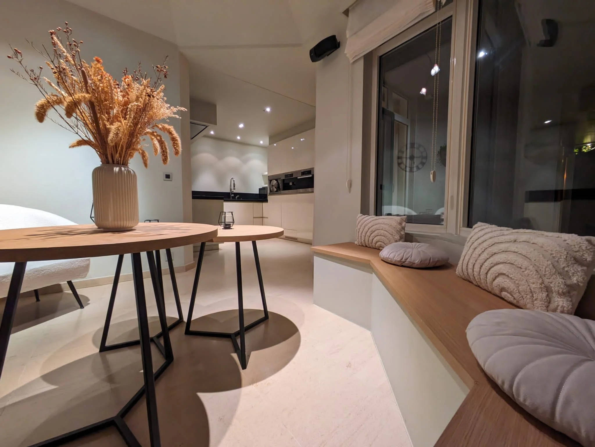 Geniet van een ruime en comfortabele leefruimte. Ontspan en voel u thuis in een gezellige omgeving met voldoende ruimte voor het hele gezelschap. Tijdens de koudere dagen kan je de openhaard aansteken voor extra warmte.