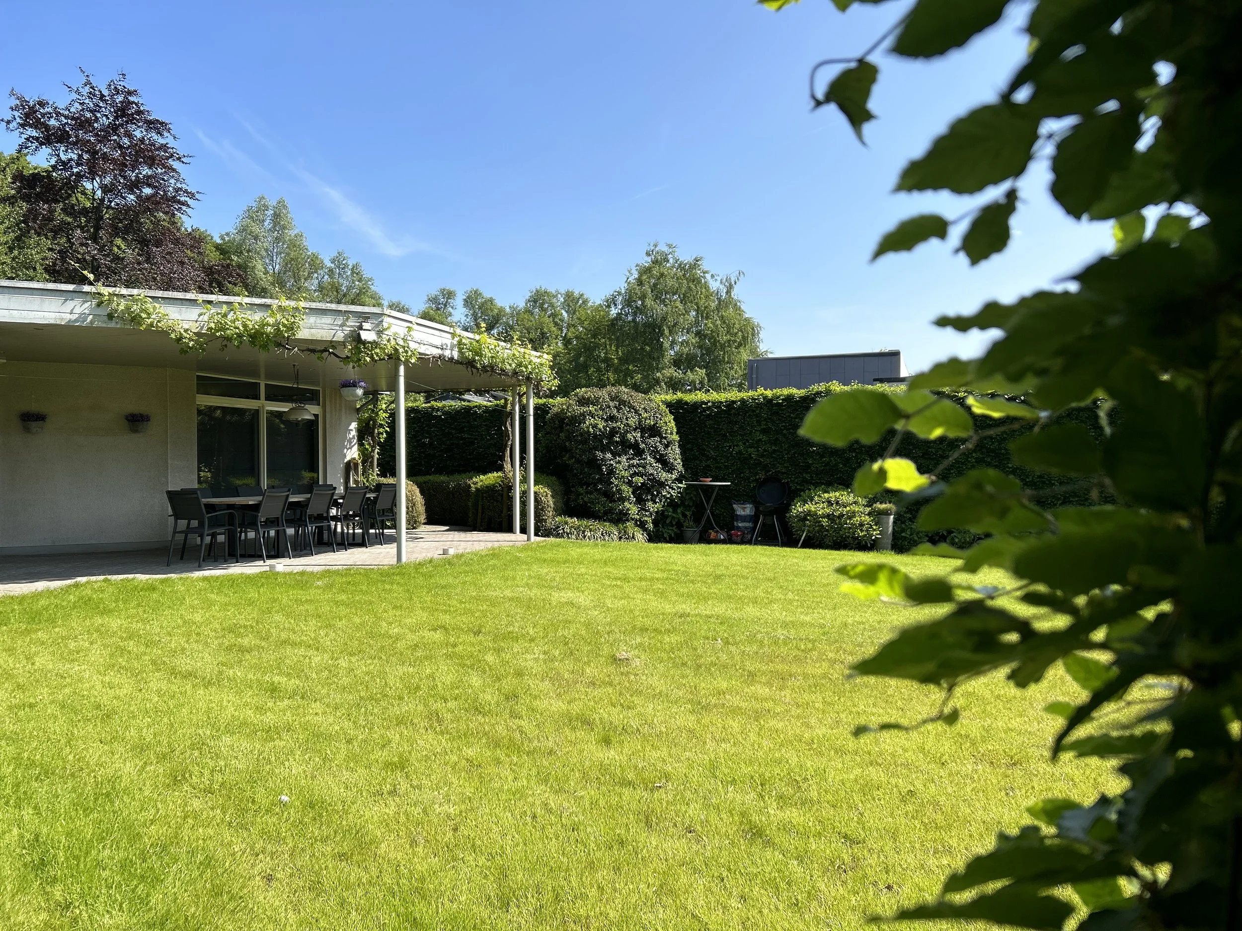 Ondek de ruime en volledig omheinde achtertuin met aparte speelweide van meer dan 1200 m2 groene rust.